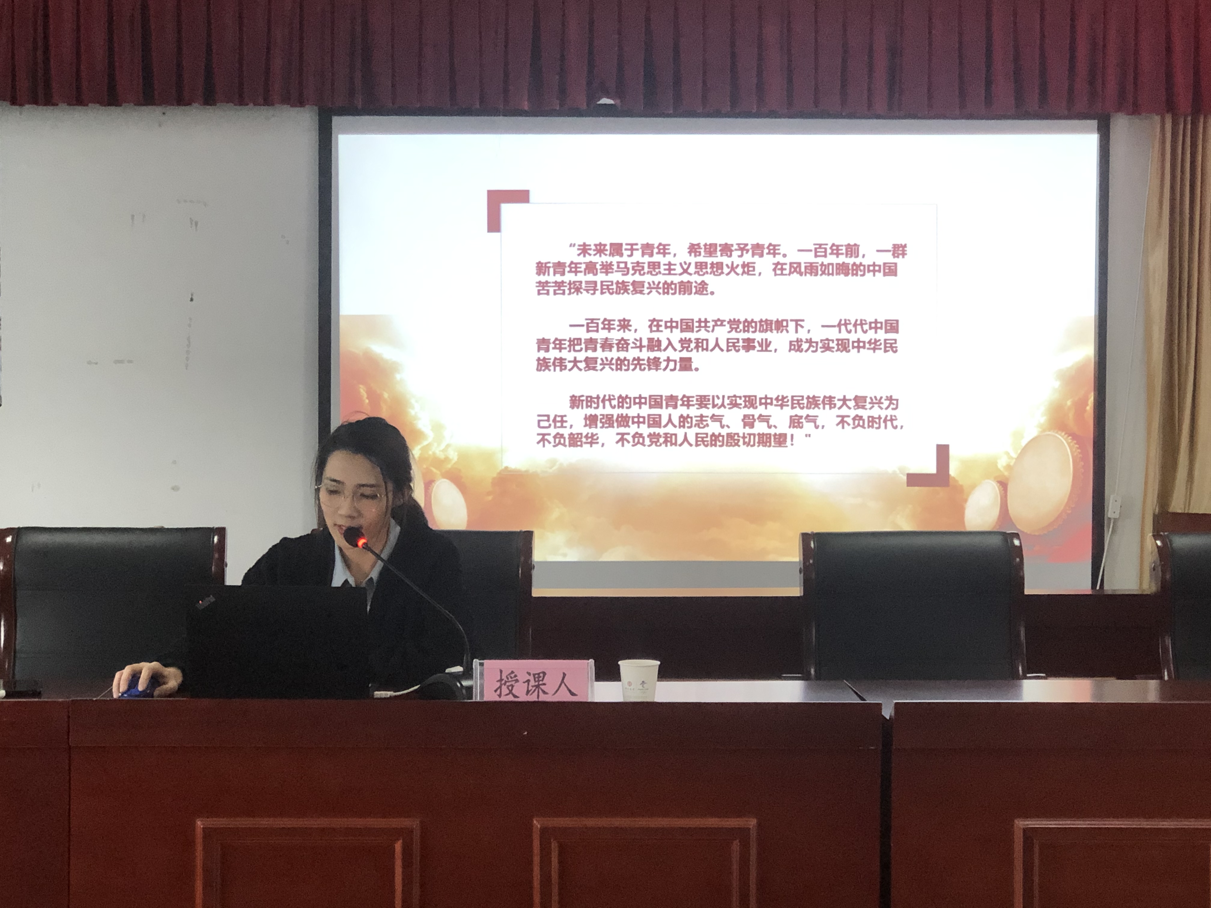 本次宣講以“百年恰是風(fēng)華正茂”為主題,圍繞習(xí)近平總書記在慶祝中國(guó)共產(chǎn)黨成立100周年大會(huì)上,對(duì)青年一代的充分肯定、殷切勉勵(lì)、深情寄語,從“不負(fù)時(shí)代,初心不改擔(dān)使命;不負(fù)韶華,心有所信方行遠(yuǎn);不負(fù)黨和人民的殷切期望,奮斗不止譜新篇”三個(gè)方面進(jìn)行深刻闡述。宣講會(huì)上,王迪通過視頻追尋革命先輩的光輝足跡。百年崢嶸歲月,眾多先輩不求顯達(dá)于世、不求暫得于己,不惜為了理想信念拋頭顱、灑熱血,用青春和生命書寫史詩。革命先輩們的事跡激勵(lì)我們,生逢盛世,作為新時(shí)代青年一代,要勇?lián)鷼v史使命,堅(jiān)定前進(jìn)信心,努力成為堪當(dāng)民族復(fù)興重任的時(shí)代新人!