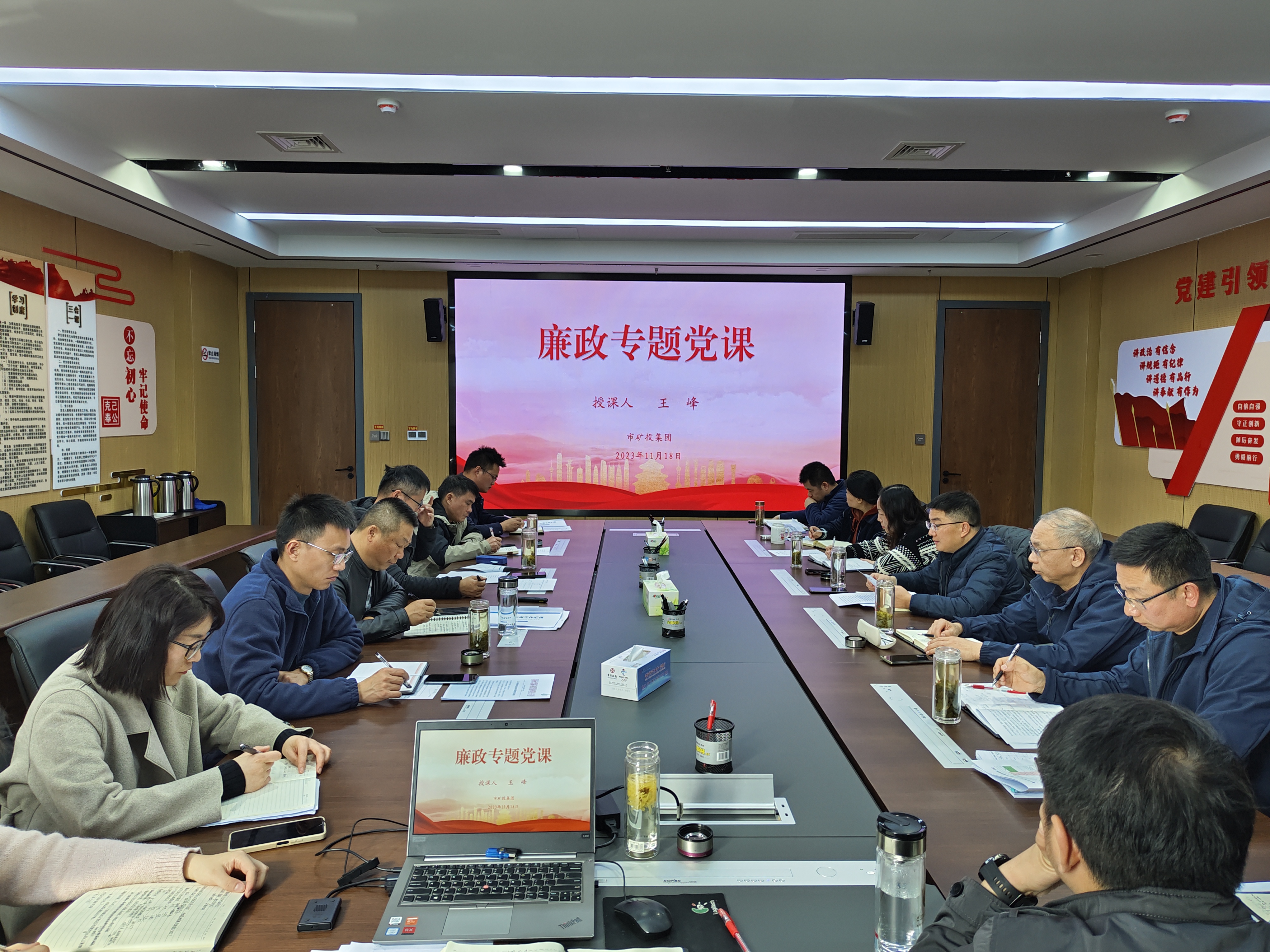 為深入貫徹落實全面從嚴治黨要求,進一步加強集團公司黨員廉潔從業(yè)教育,近日,市礦投集團黨委書記王峰講授廉政專題黨課,集團公司中層以上管理人員及各子公司主要負責人參加學習。