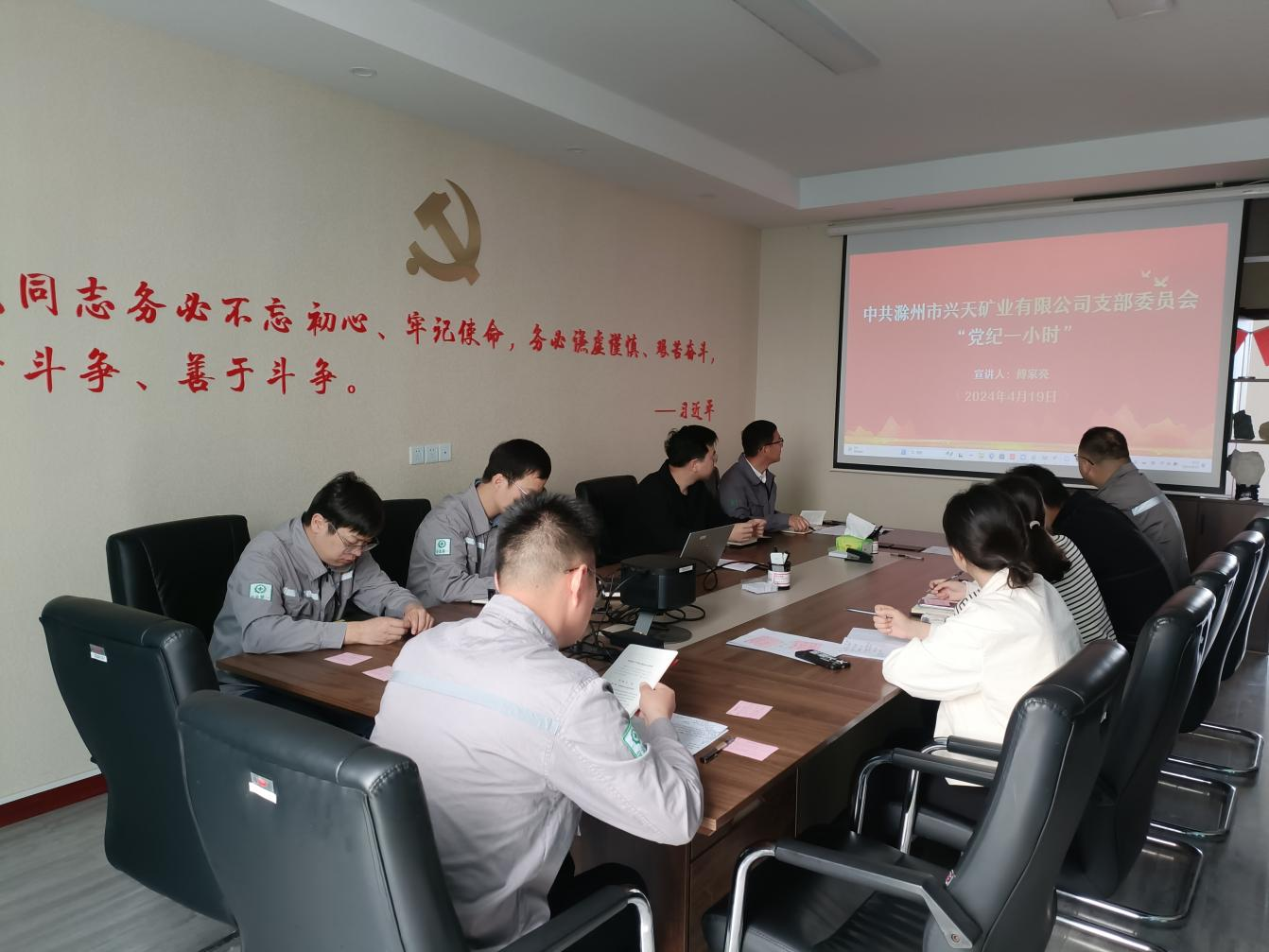 為扎實(shí)開展黨紀(jì)學(xué)習(xí)教育工作,4月19日,興天礦業(yè)黨支部組織召開“黨紀(jì)一小時(shí)”活動(dòng),支部紀(jì)檢委員傅家亮同志為參會(huì)人員深入解讀新修訂的《中國(guó)共產(chǎn)黨紀(jì)律處分條例》。