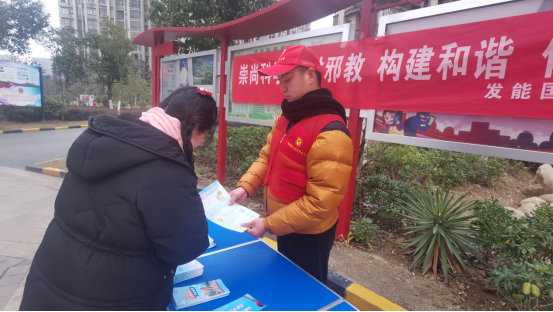 報(bào)告結(jié)束后,志愿者們還在社區(qū)內(nèi)進(jìn)行了反邪教宣傳,向過往居民散發(fā)反邪教宣傳單,從什么是邪教、邪教的特征、本質(zhì)、如何防范等方面對(duì)群眾進(jìn)行宣傳教育,使社區(qū)群眾進(jìn)一步認(rèn)識(shí)到了邪教組織的危害性,增強(qiáng)了的反邪教意識(shí)。