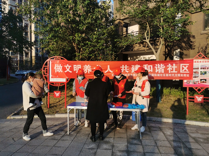 志愿者向社區(qū)群眾宣傳文明養(yǎng)犬、《滁州市文明行為促進(jìn)條例》、《滁州文明16條》(2.0版)、《滁州市民公約》等內(nèi)容,引導(dǎo)群眾駕乘電動車佩戴頭盔,厲行勤儉節(jié)約,反對鋪張浪費,養(yǎng)成文明健康綠色環(huán)保的生活方式,樹立文明新風(fēng)尚,爭做文明有禮滁州人。
