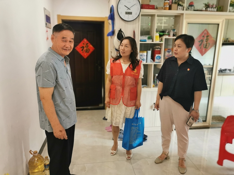 在凱迪塞納河畔小區(qū),志愿者們走進(jìn)困難黨員楊義平家中,詳細(xì)詢問(wèn)他的身體狀況和家庭收入來(lái)源,叮囑他在高溫天氣要注意身體,合理鍛煉、樂觀生活。