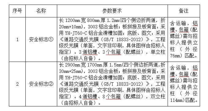 1. 本項目最高限價:安全標志①為365元/塊,安全標志②為2230元/塊,報價應包含但不限于產(chǎn)品制作、運輸及稅金等費用,我司不再支付其他任何費用。投標報價不得高于最高限價,否則按無效標處理。