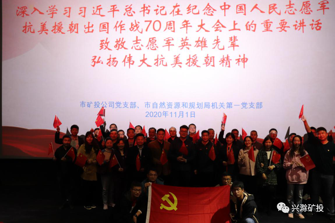 11月1日下午,市礦投公司黨支部聯(lián)合市自然資源和規(guī)劃局機(jī)關(guān)第一黨支部開展愛國主義主題教育活動,集中觀看習(xí)近平總書記在紀(jì)念中國人民志愿軍抗美援朝出國作戰(zhàn)70周年大會上的重要講話視頻和抗美援朝主題電影《金剛川》,共同緬懷中國人民志愿軍建立的不朽功勛,向創(chuàng)造偉大奇跡的志愿軍將士致以崇高敬意。
