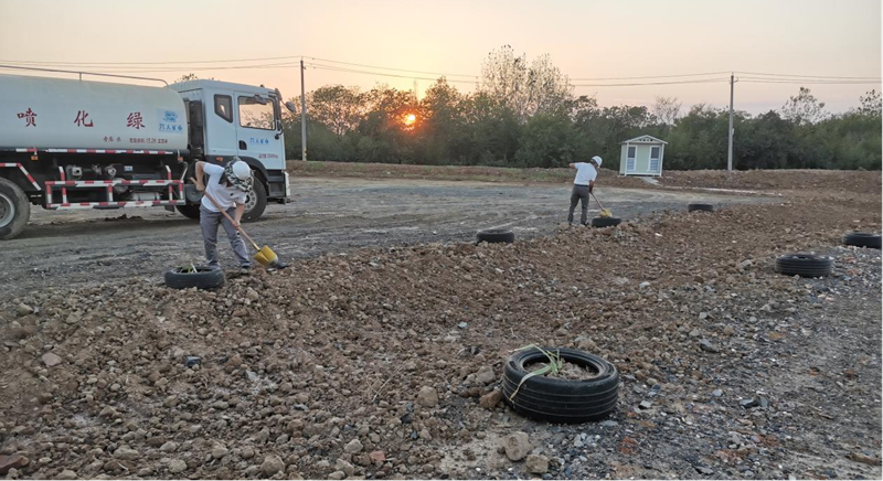 在具備種植條件后,公司陸續(xù)開展移栽樹木、種植花草、澆水養(yǎng)護(hù)等工作。經(jīng)過(guò)一個(gè)多月的努力,原本荒蕪的礦區(qū)已經(jīng)悄然發(fā)生變化,路邊播撒的草種和格?;ǘ家寻l(fā)了芽。放眼望去,一抹抹淡綠色生機(jī)盎然。