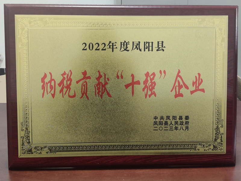 中都瑞華:榮獲鳳陽縣納稅貢獻(xiàn) “十強(qiáng)”企業(yè)榮譽稱號